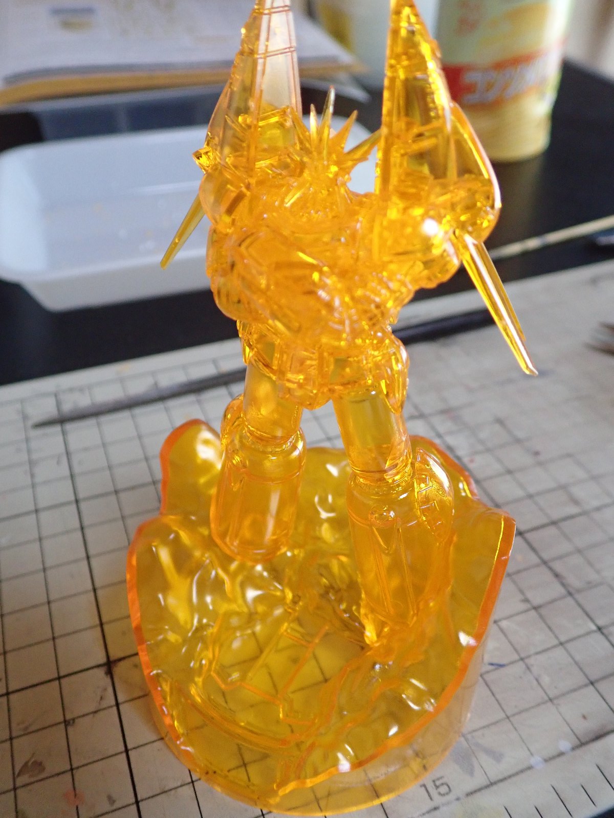 完成したので、写真を撮りました。あまり固定モデルは作らないのですが、コレに関しては特別に思い入れがあるので作ってみました。ガンバスターもクリアで塗装せずに見栄えするのでちょうど良いかもしれません。