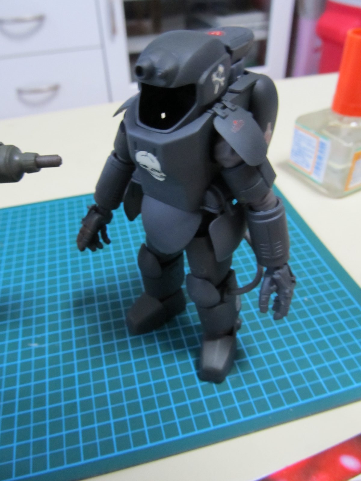 | エアブラシで塗装してます。タイヤブラックを薄めて使ってみました。ちょっと黒くなりすぎかな? | |