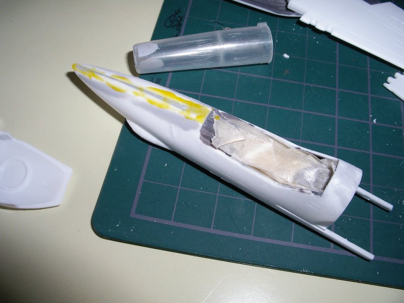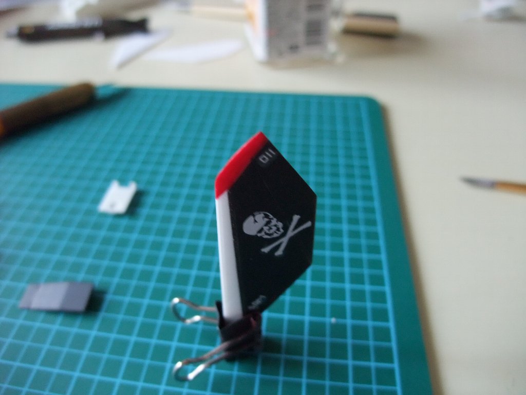 | 尾翼の赤部分を、気合で筆塗りします。 | |