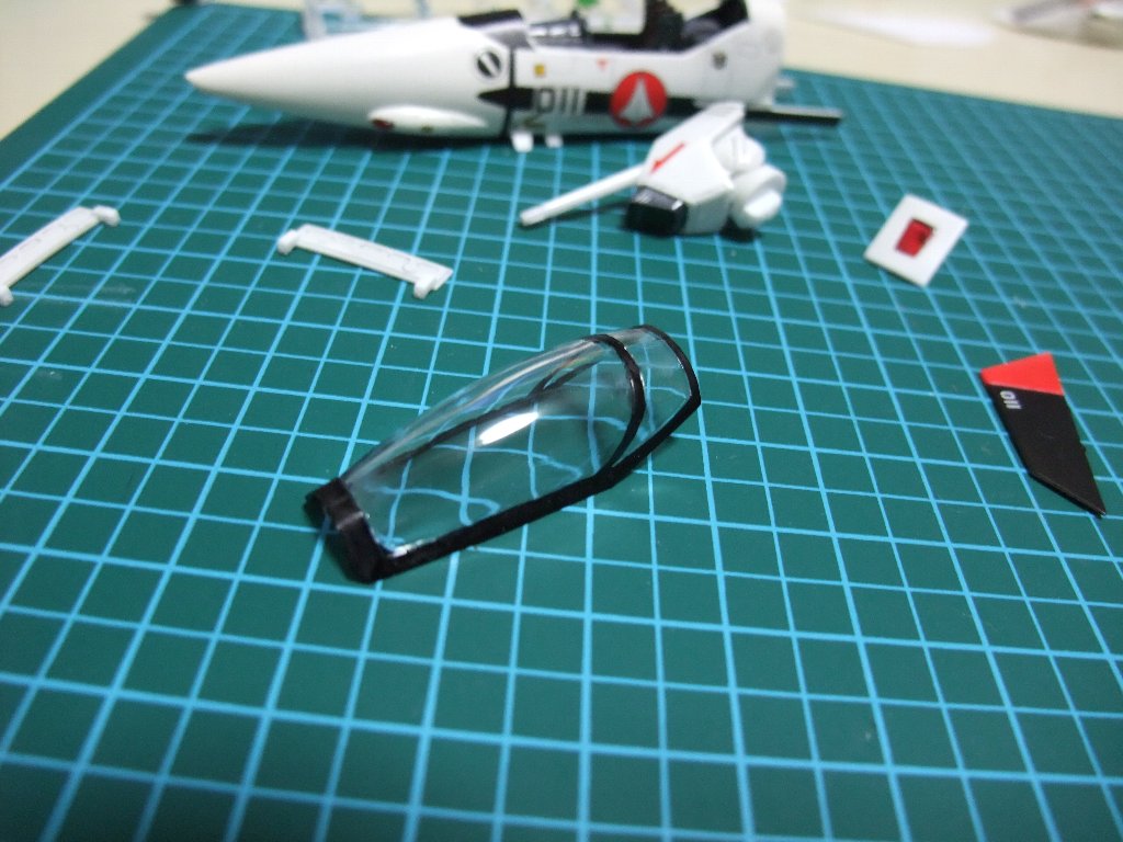 | コクピットにもデカールを貼ります。これで、大体の部品が完成しました。 |