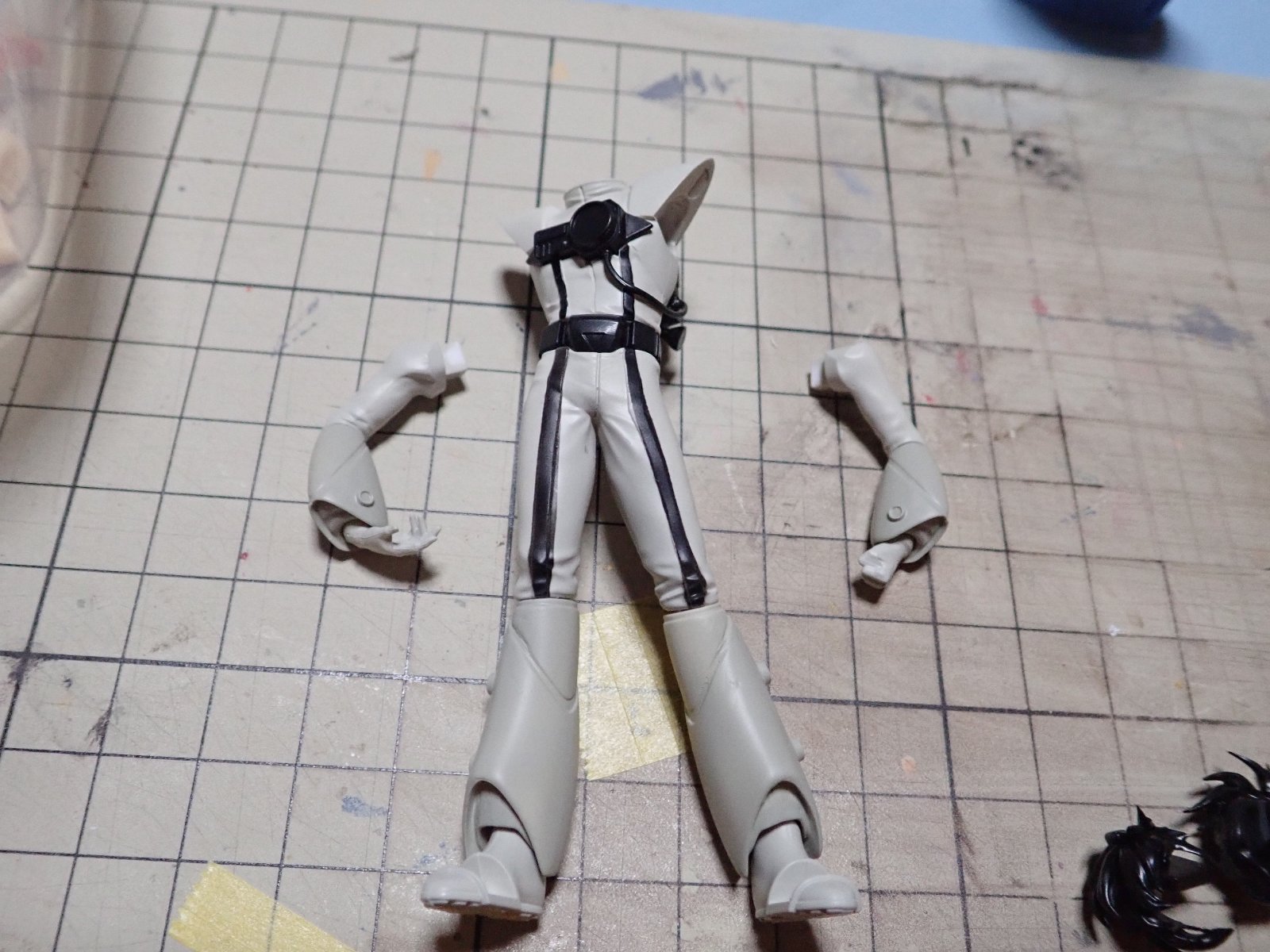 基本塗装をしていきます。イメージより白いので、グレーで塗ります。