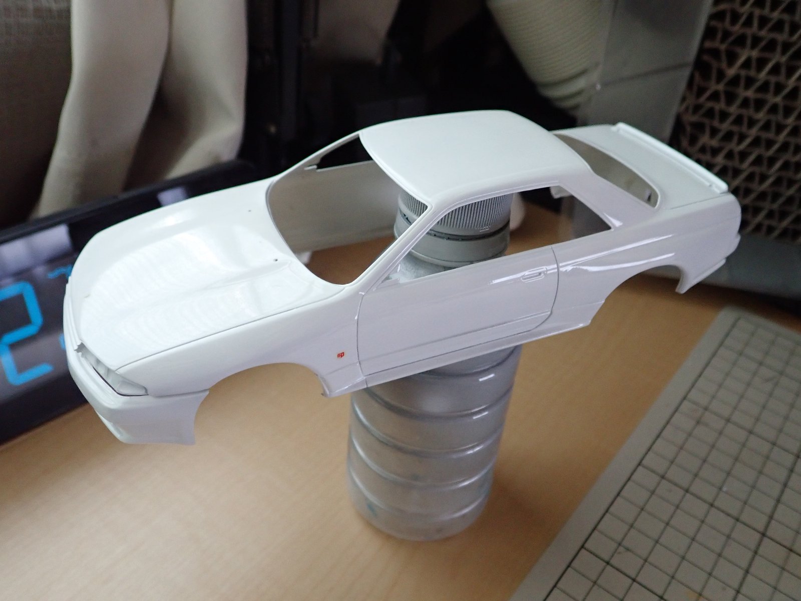 ブラックバードも出来たので、3部作最終章の零奈のGT-Rも作っていきます。一度2000番のペーパーをかけた後にクレオスのクリアーをもう一度かけました。