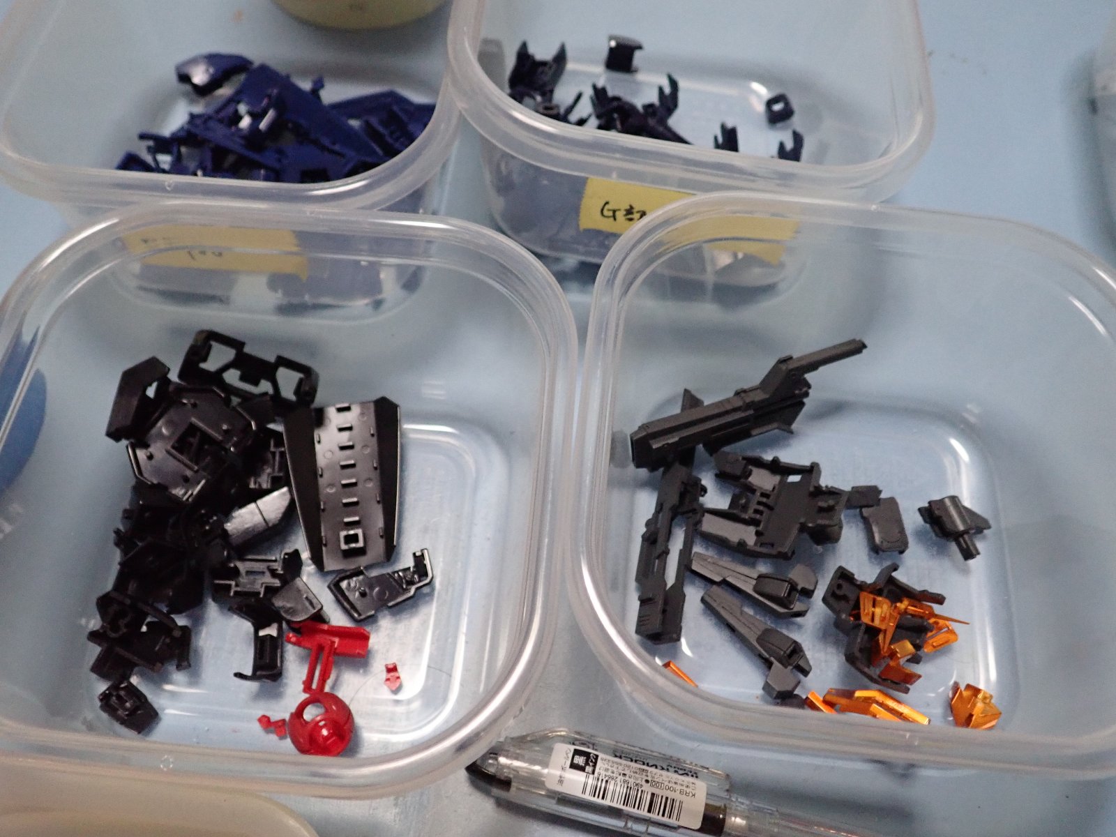 塗装をしました。今回は青色部分をブルーFS15050(328)で、紺部分はブルーFS15044(326)、黒っぽい紺はミッドナイトブルーで塗装してみました。