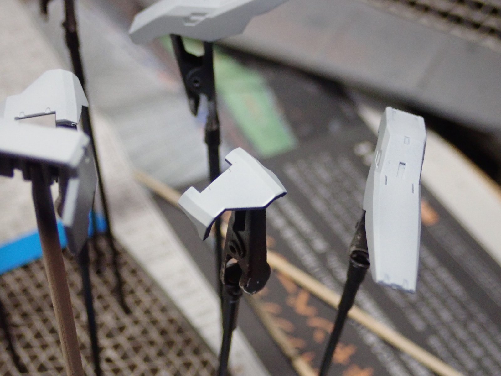 他の部品も表面処理をして、塗装を開始します。Eランナー分は主にライトグレーFS36495(338)で塗装しました。FパーツはグレーFS16440(315)にグレイッシュブルーFS35237(337)を10%位追加しました。