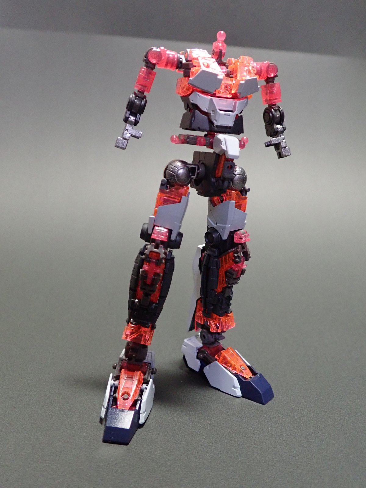 変形機構上しょうがないのでしょうけど、肩の内側がピンクフレームなのでユニコーンモードの時に目立ちますね。コレ、グレーなどで塗っちゃた法が良いのかな?迷います。