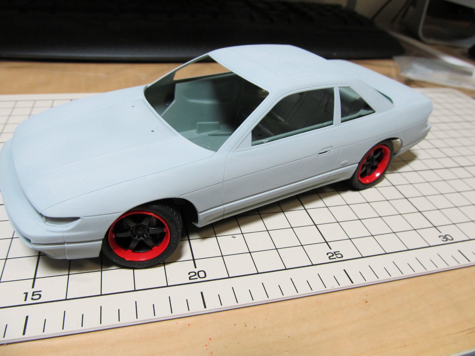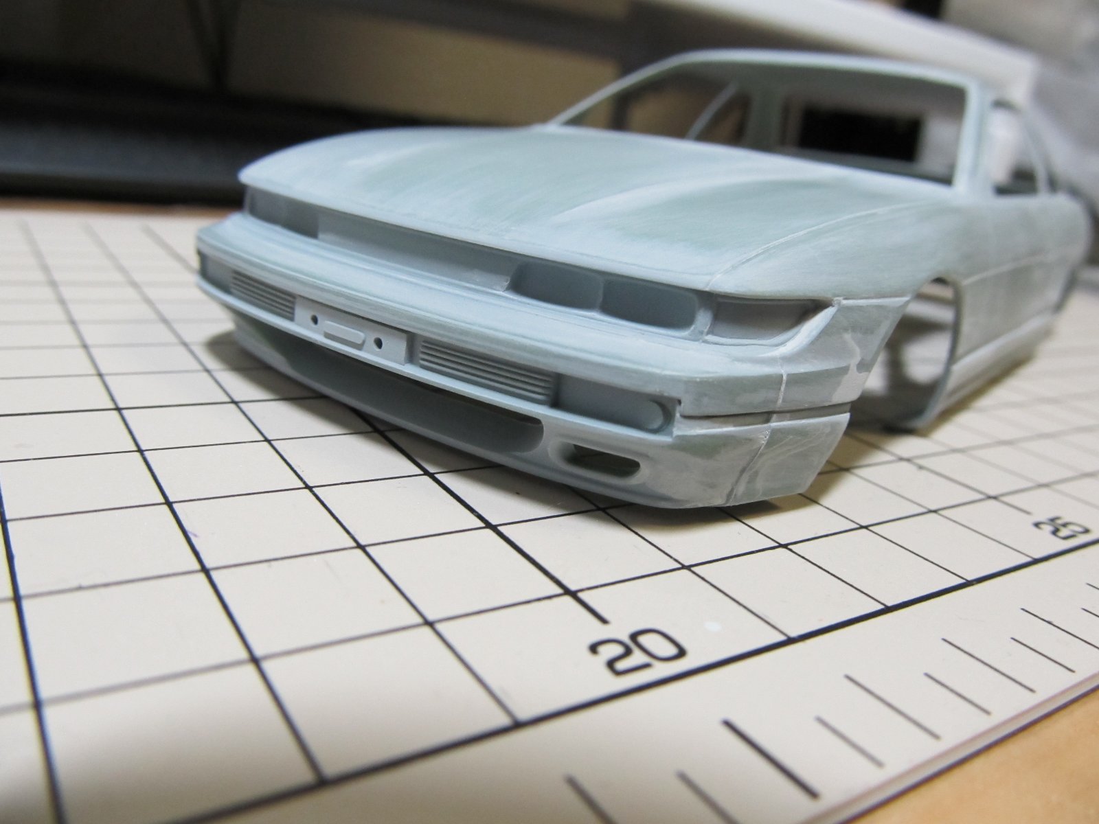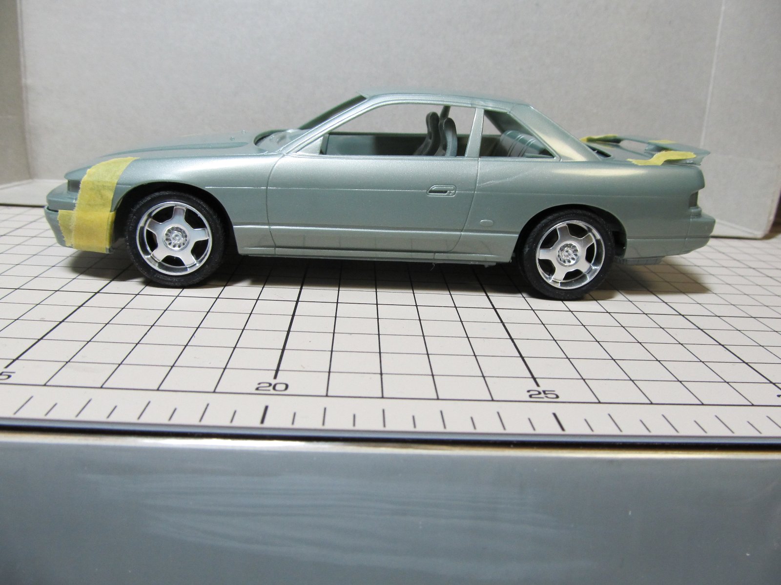 | ほぼ完成です。あとは、ナンバープレートを付けるだけです。改めてみると懐かしいS13ですね。キット自体のつくりはおおざっぱですが、出来上がるとS13っぽさが出ますね。 | |