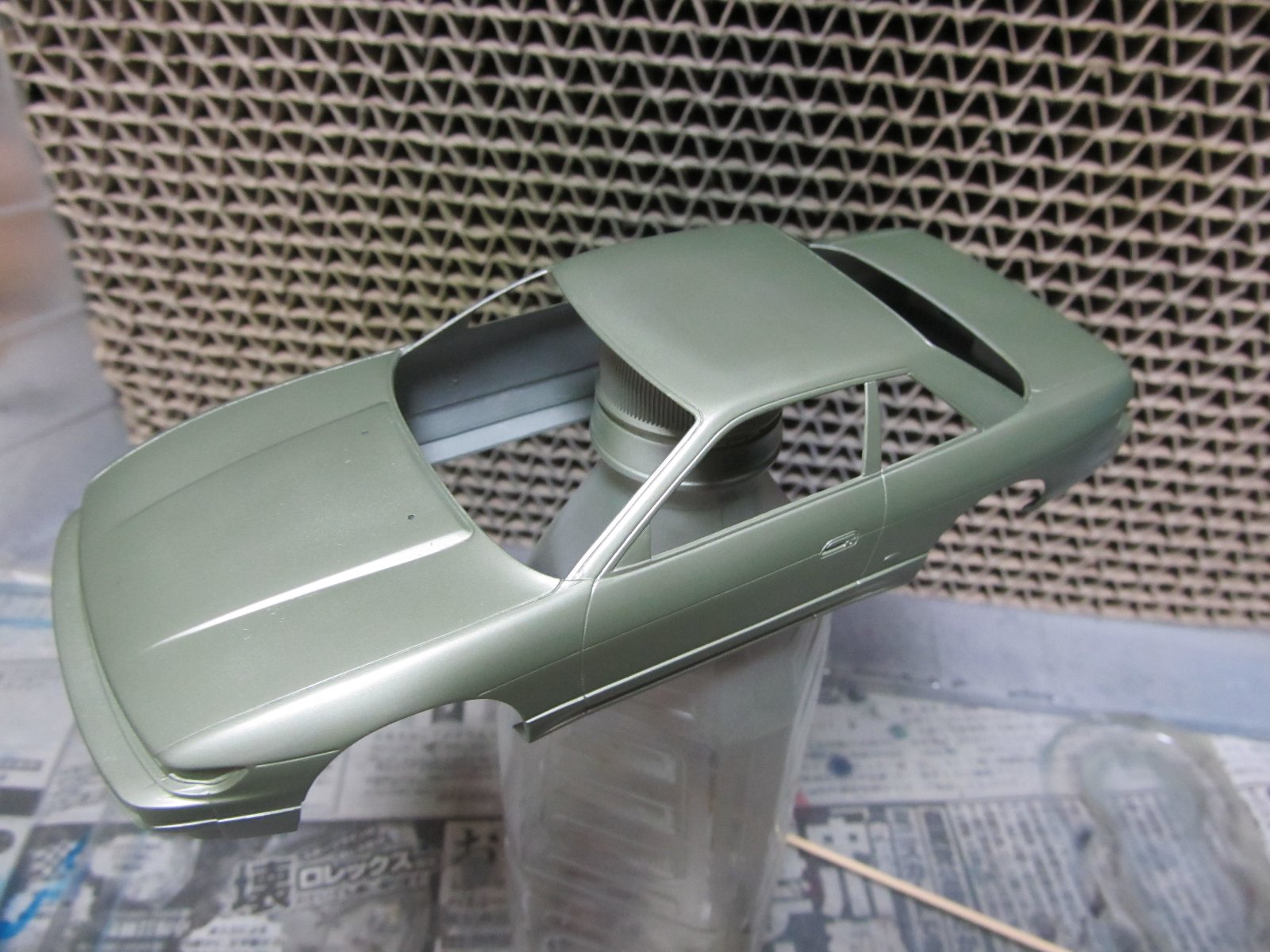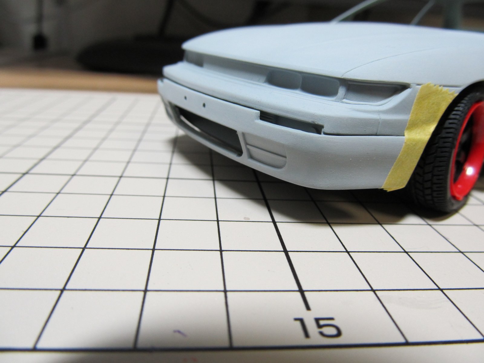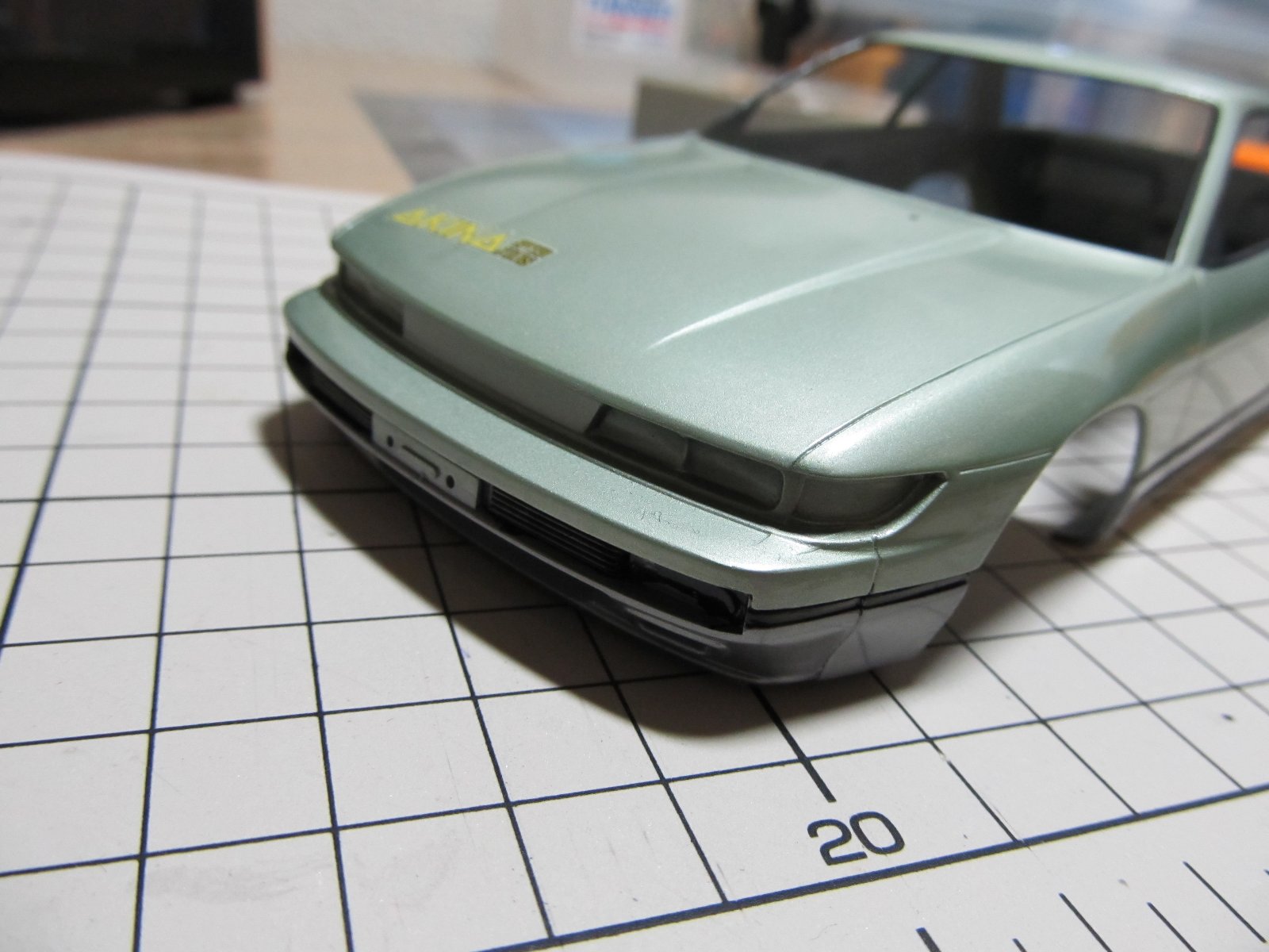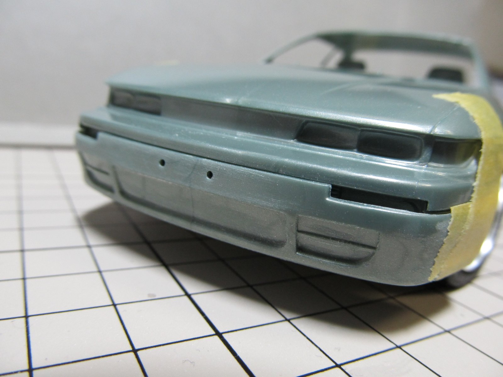 | ほぼ完成です。あとは、ナンバープレートを付けるだけです。改めてみると懐かしいS13ですね。キット自体のつくりはおおざっぱですが、出来上がるとS13っぽさが出ますね。 | |