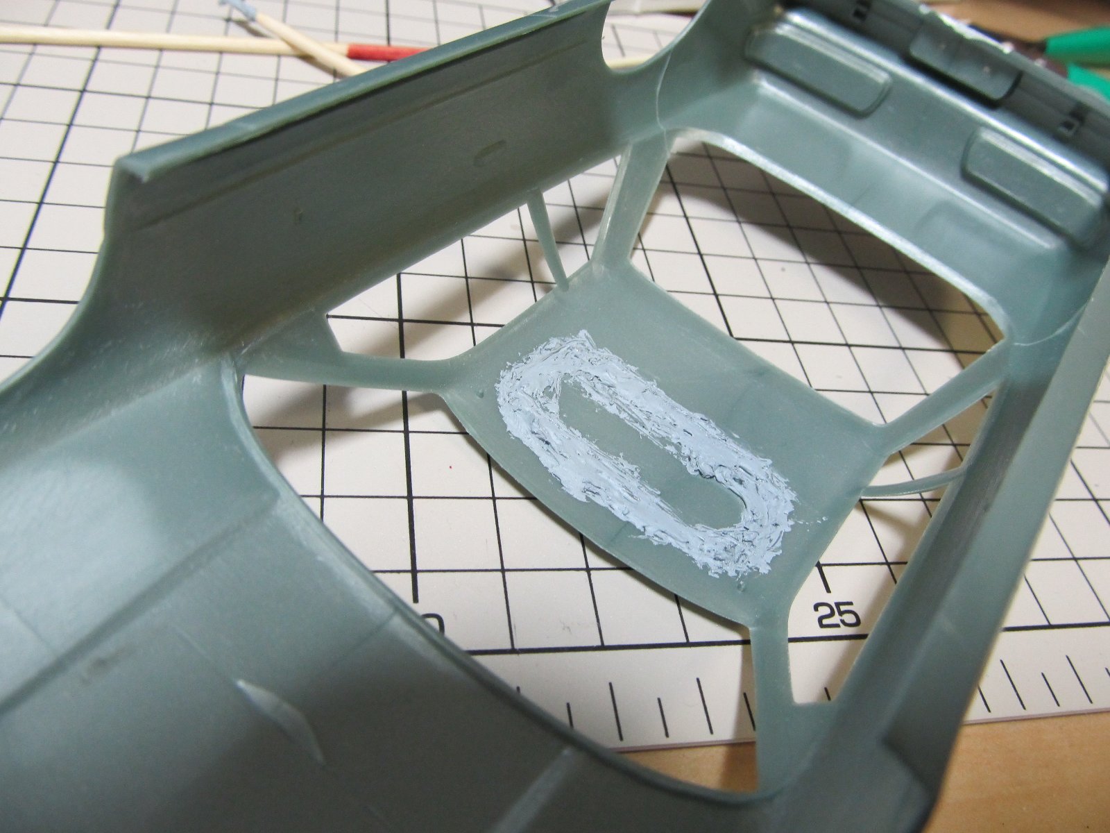 | 内装も作ります。デカール類を貼り付けます。 | |