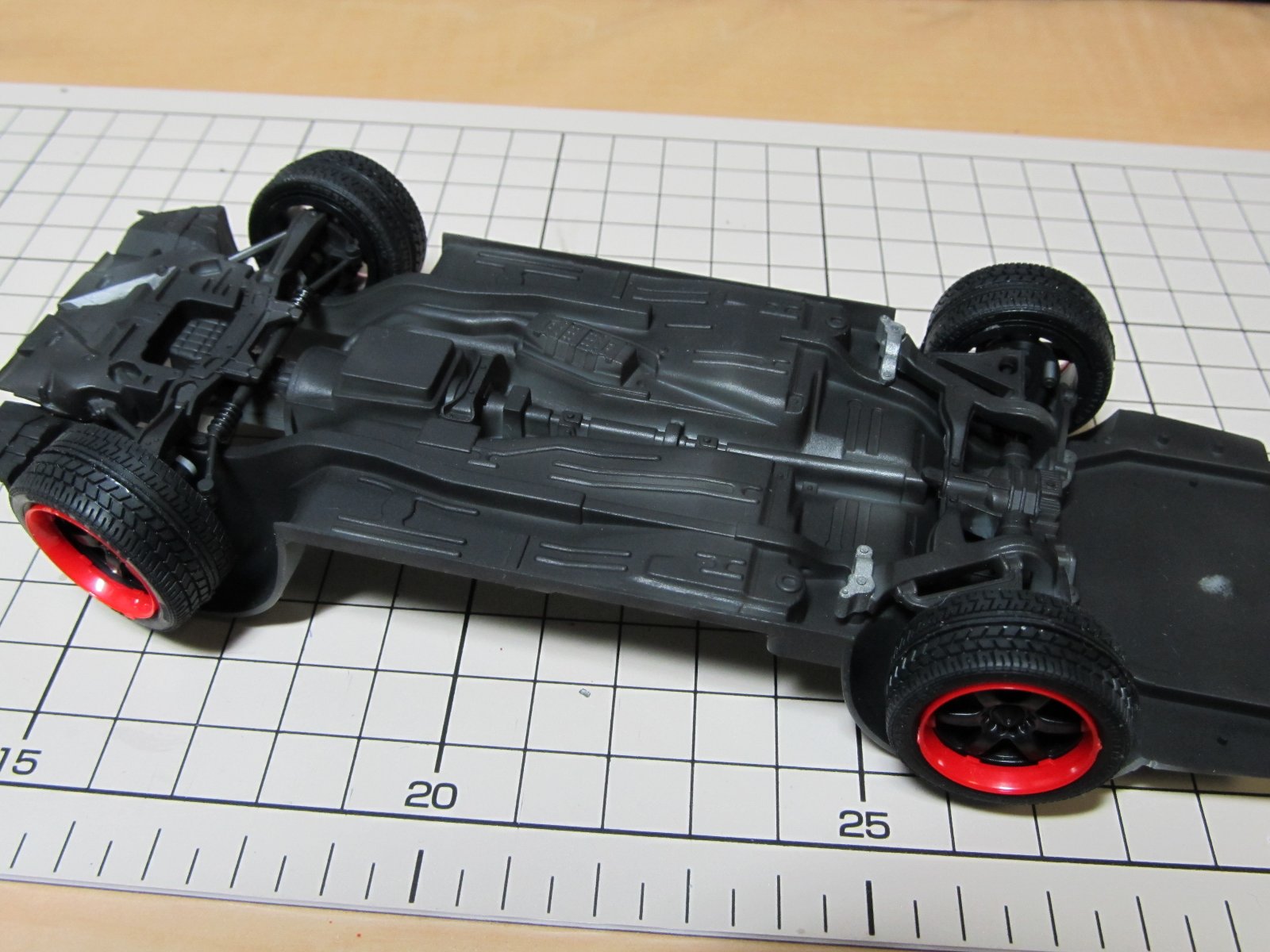 | シャーシを黒で塗りました。ホイールは手持ちのものに交換予定です。 | |