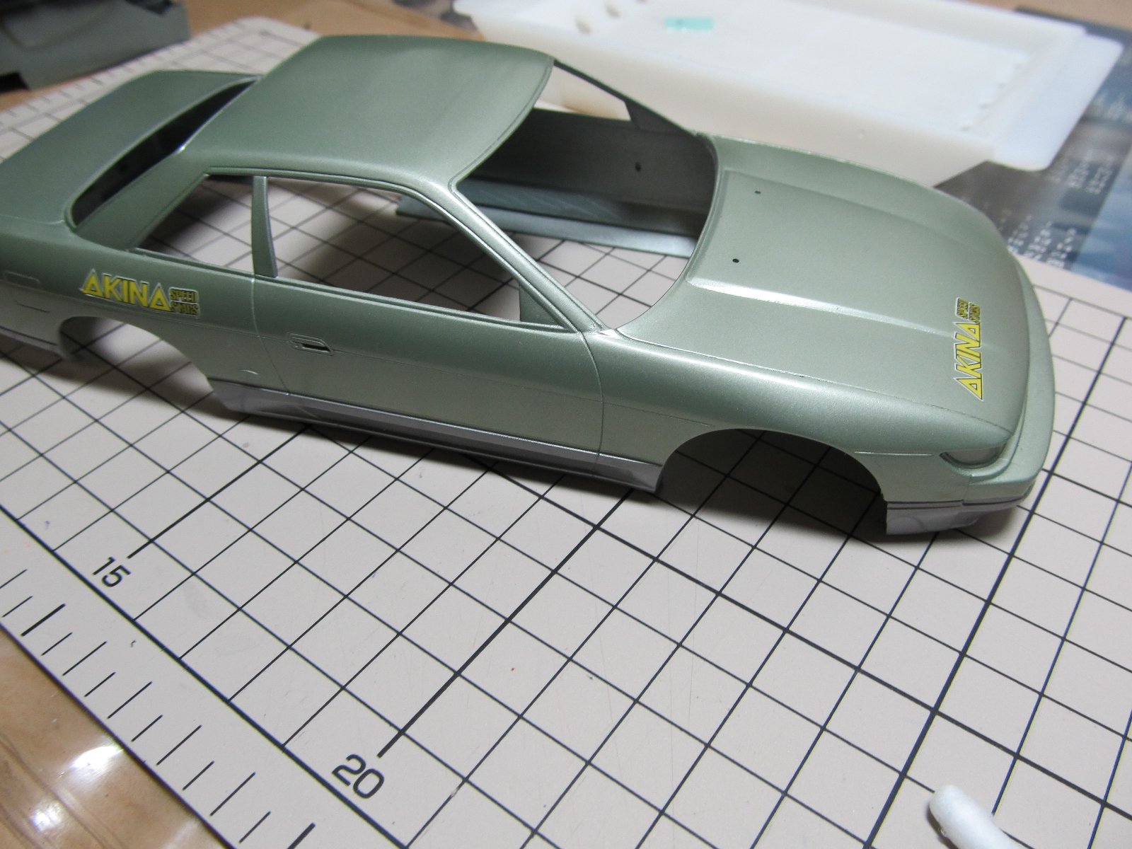 | すっかり忘れていたデカールを貼ります。これが無いと、ただのシルビアですからね。 | |