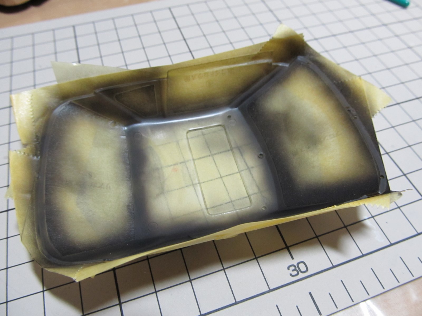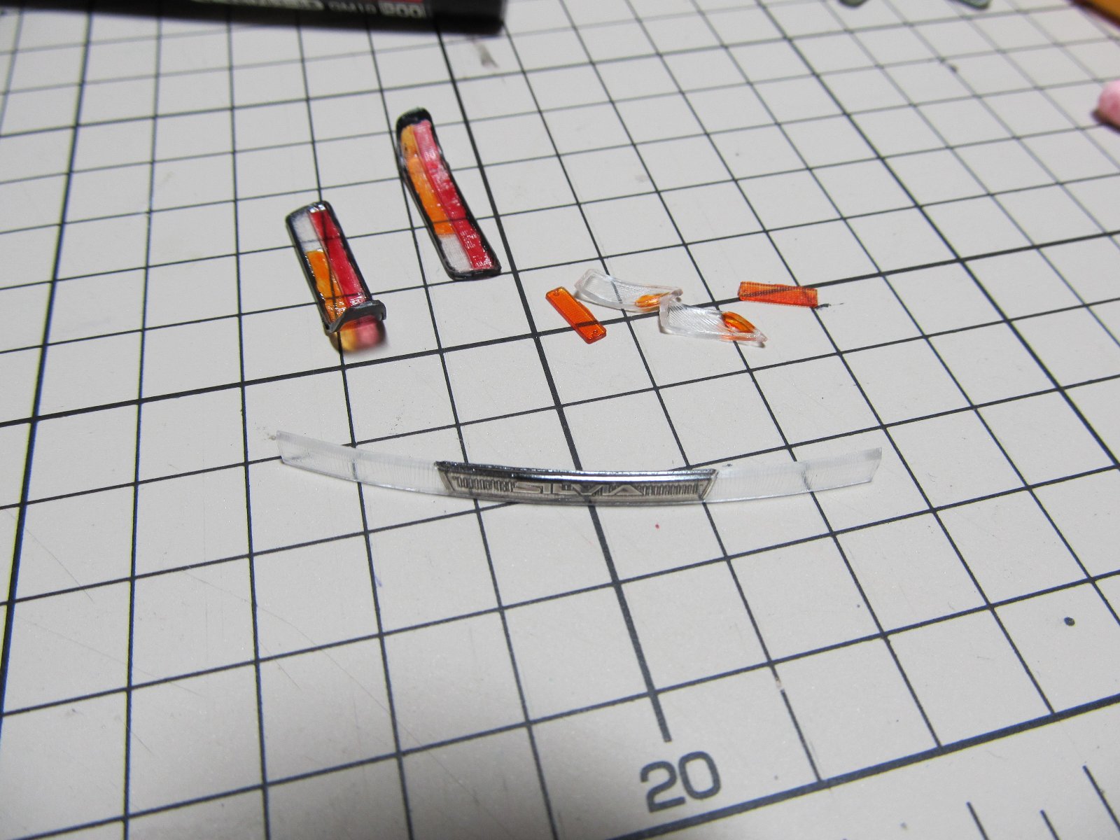| クリアーパーツを塗装します。今回は面倒だったので、手書き一発です。 | |