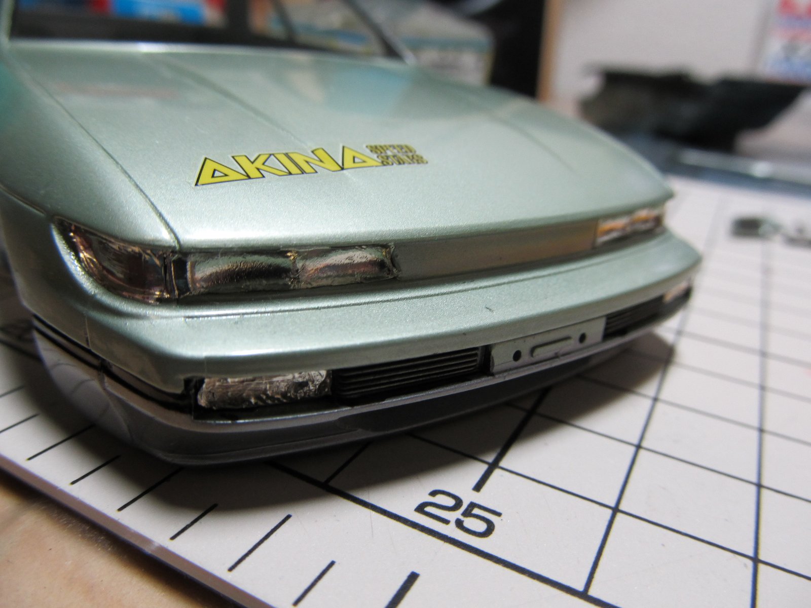 | ライト部もメタルックを貼りつけていきます。 | |