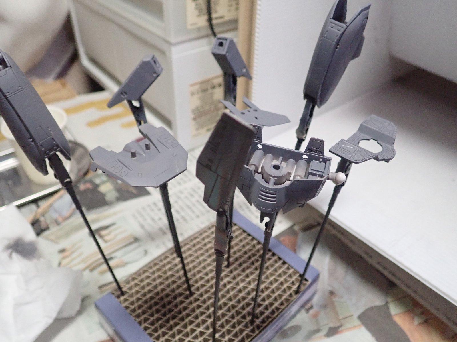 本体色を水性カラーのディアクティブホワイトで筆塗りし、ムラになった状態からエアブラシで薄く塗装しています。