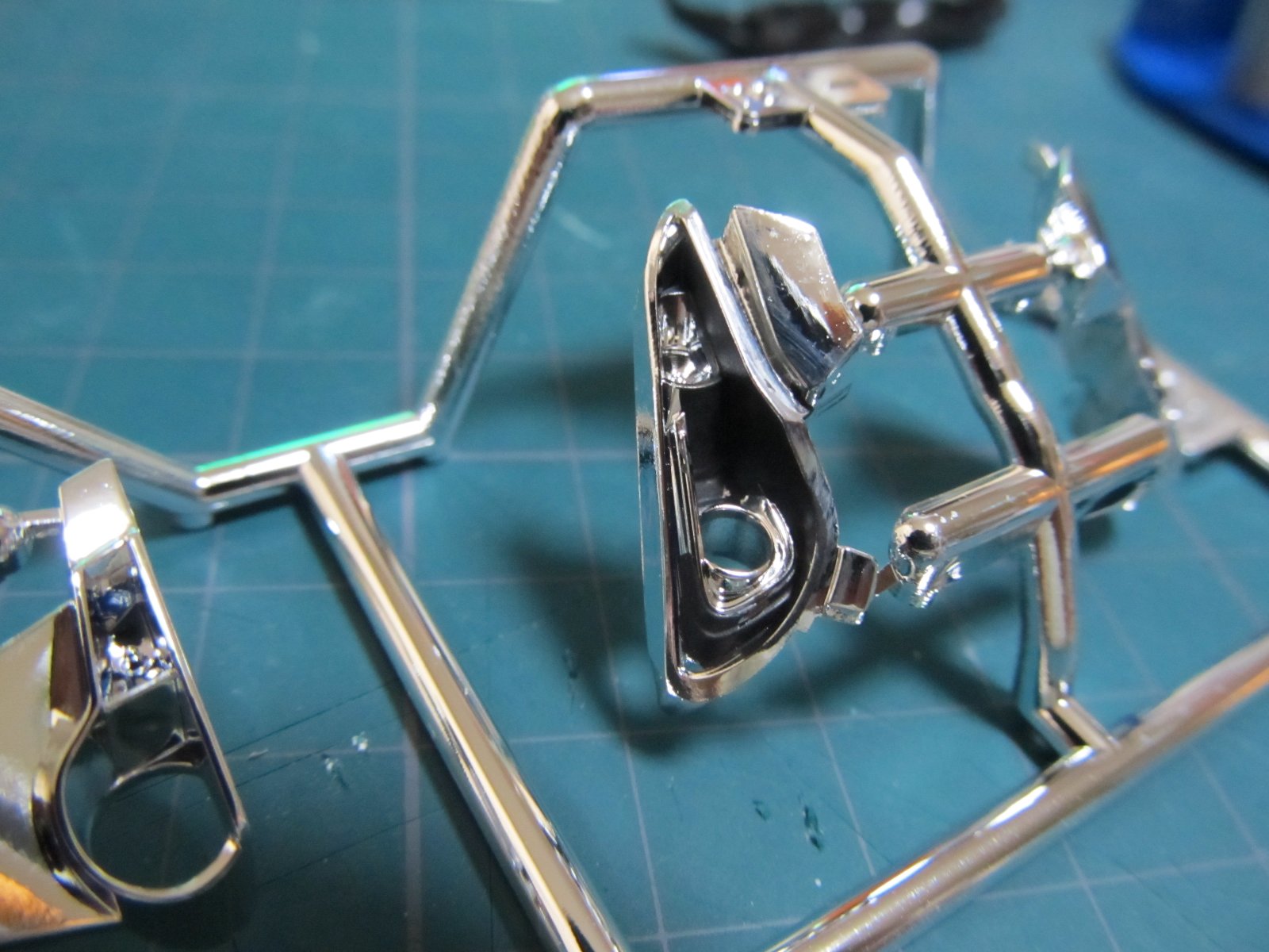 | 今回は、メッキ部品にラッカー系のフラットブラックを筆塗りしてみました。 | |