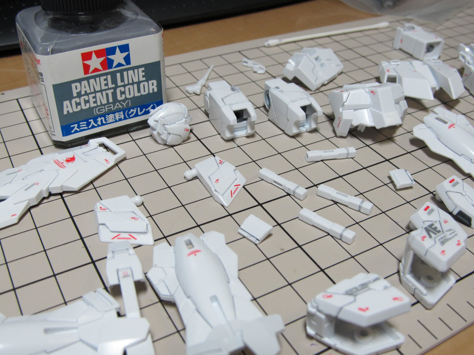| デカール乾燥後にスミイレをします。スミイレはタミヤのものを利用します。これがものすごく楽なんですよね。 |